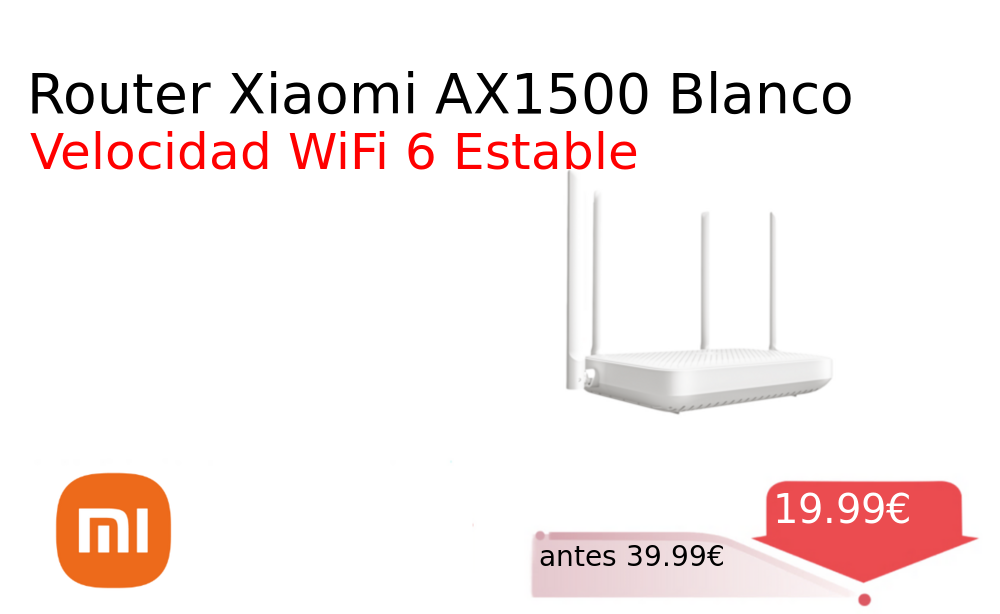 Mitad de precio✂️ Router Xiaomi AX1500 Blanco❗️🆕 #Mi 📛Precio Ya 19.99€❗️ (PVP: +39.99€) ✨Router WiFi 6 Xiaomi con velocidad AX1500 en color blanco Conexión estable para múltiples dispositivos simultáneos Garantía oficial del fabricante incluida. cholloya.com/XIAOMI_AX1500