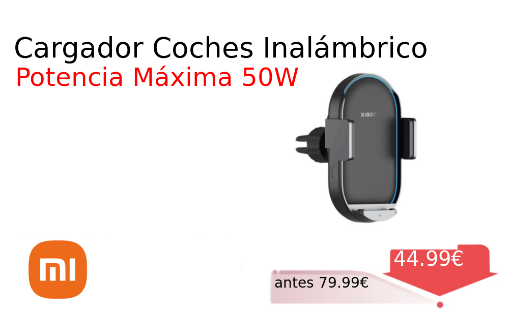 40% 📉 Vaya descuentazo‼‼ Cargador Coches Inalámbrico❗️🆕 #Mi 📛Precio Ya 44.99€❗️ (PVP: +79.99€) ✨Cargador inalámbrico para coche con potencia de 50W Compatible con carga rápida y diseño seguro Producto original Xiaomi con garantía oficial incluida. cholloya.com/XIAOMI_50W_CAR