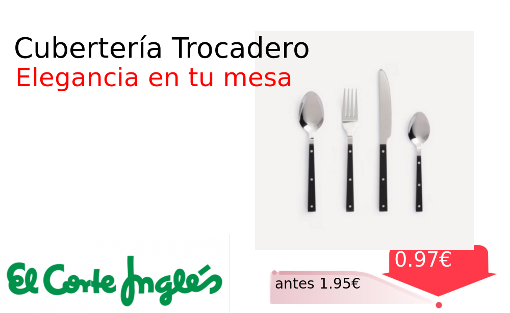 Mitad de precio✂️ Cubertería Trocadero❗️🆕 #Elcorteingles 📛Precio Ya 0.97€❗️ (PVP: +1.95€) ✨Cubertería de acero inoxidable con diseño elegante y duradero Perfecta para tu mesa diaria o ocasiones especiales fácil de combinar con diseno innovador y. cholloya.com/TROCADERO_CUBER