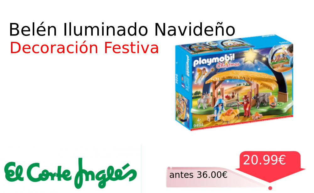 40% 📉 Vaya descuentazo‼‼ Belén Iluminado Navideño❗️🆕 #Elcorteingles 📛Precio Ya 20.99€❗️ (PVP: +36.00€) ✨Portal de Belén navideño con iluminación integrada figuras detalladas Playmobil para crear escenas mágicas y decoración festiva familiar con diseno innovador y funcional. cholloya.com/PLAYMOBIL_BELEN