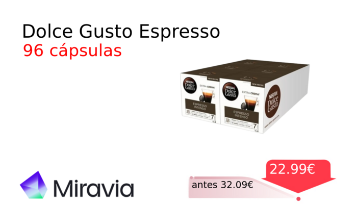 Oferta Flash⚡ Dolce Gusto Espresso❗️🆕 #Miravia 📛Precio Ya 25.79€❗️ (PVP: +32.09€) ✨Las cápsulas Dolce Gusto están diseñadas para ofrecerte una taza de café excepcional en cada preparación. Con un solo paquete de 96 cápsulas cholloya.com/96DOLCEGUSTO