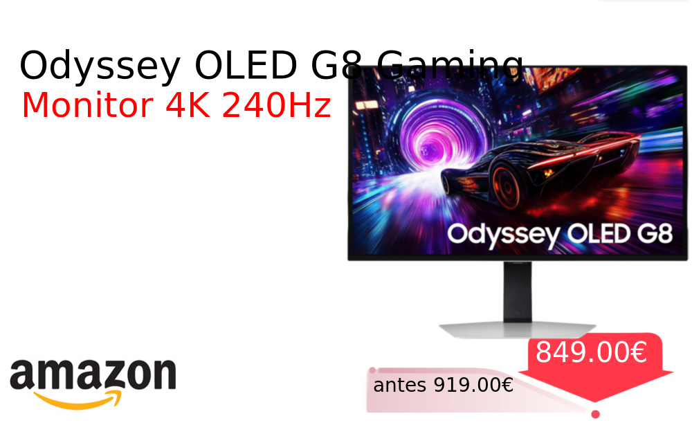 Buen Precio✨ Odyssey OLED G8 Gaming❗️🆕 #Amazon 🇪🇸 📛Precio Ya 849.00€❗️ (PVP: +919.00€) ✨Monitor gaming OLED de 27 pulgadas con resolución 4K y tasa de refresco 240Hz Tecnología Glare Free y certificación VESA DisplayHDR TrueBlack para colores. cholloya.com/SAMSUNG_OLED_G8
