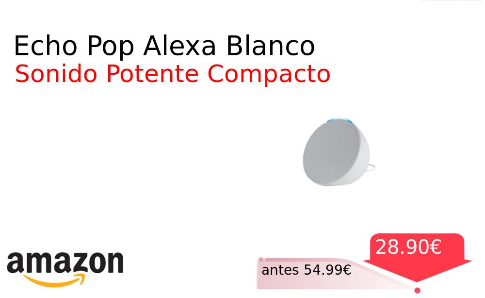 40% 📉 Vaya descuentazo‼‼ Echo Pop Alexa Blanco❗️🆕 #Amazon 🇪🇸 📛Precio Ya 28.90€❗️ (PVP: +54.99€) ✨Altavoz inteligente compacto con Alexa y sonido potente Diseño moderno en blanco para disfrutar de música y controlar tu hogar fácilmente. cholloya.com/ECHO_POP_BLANCO