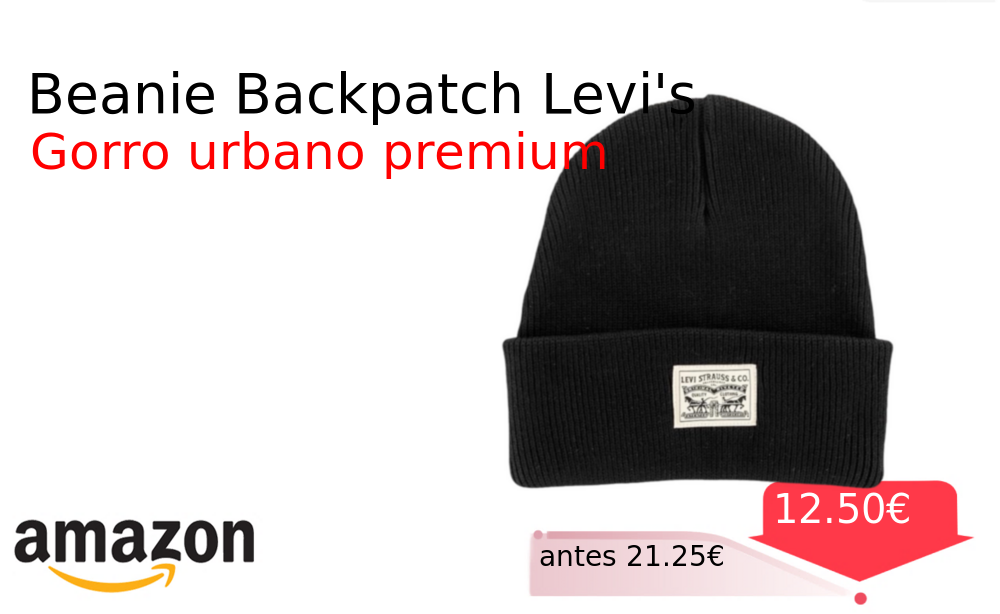 40% 📉 Vaya descuentazo‼‼ Beanie Backpatch Levi's❗️🆕 #Amazon 🇪🇸 📛Precio Ya 12.50€❗️ (PVP: +21.25€) ✨Gorro Levi's con parche trasero icónico Material premium de alta calidad diseño urbano y cómodo Ideal para looks casuales con diseno innovador y funcional. cholloya.com/LEVIS_BEANIE_BP
