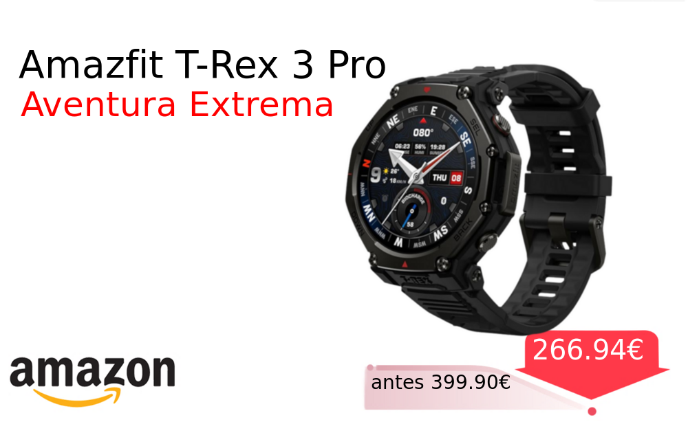 Más de un 30% 🚀 Amazfit T-Rex 3 Pro❗️🆕 #Amazon 🇪🇸 📛Precio Ya 266.94€❗️ (PVP: +399.90€) ✨Reloj deportivo robusto con pantalla AMOLED de zafiro y bisel de titanio GPS dual mapas sin conexión y linterna incorporada para tus aventuras. cholloya.com/AMAZFIT_TREX3_P