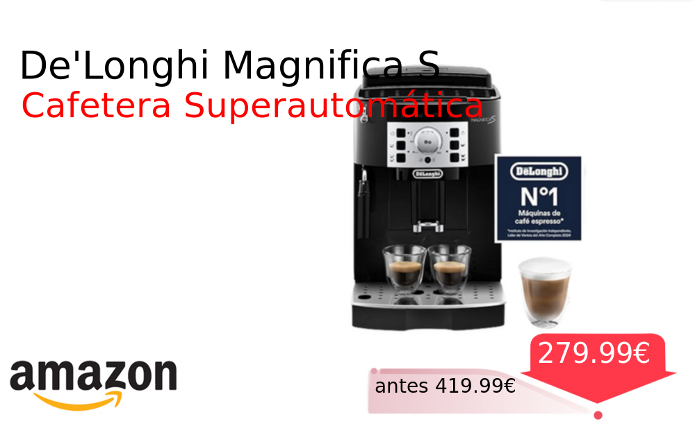 Más de un 30% 🚀 De'Longhi Magnifica S❗️🆕 #Amazon 🇪🇸 📛Precio Ya 279.99€❗️ (PVP: +419.99€) ✨Cafetera superautomática con espumador manual para espresso y cappuccino Panel de control intuitivo y acabado en negro elegante para tu cocina. cholloya.com/DELONGHI_MAGNIF