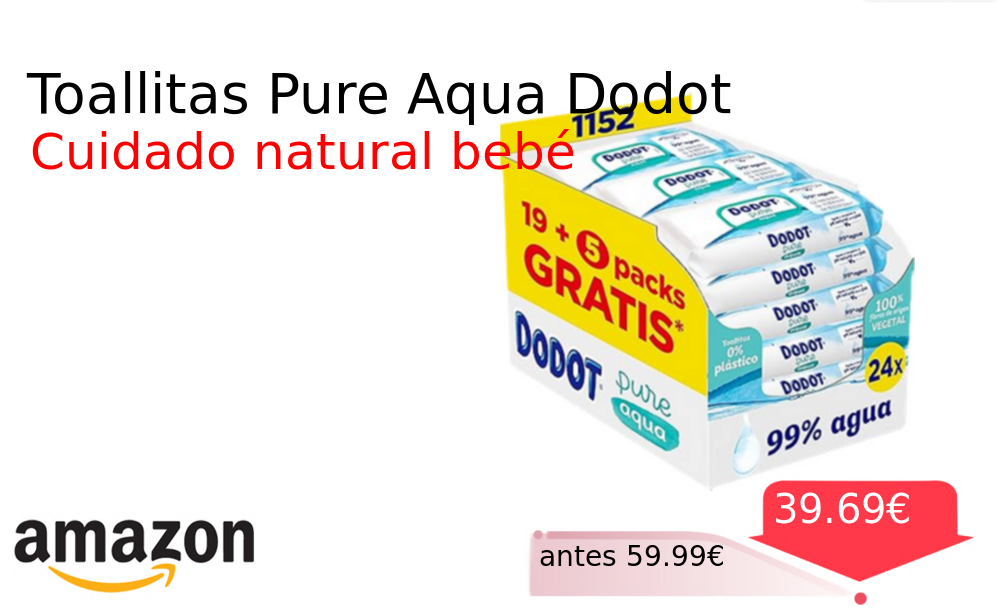 Más de un 30% 🚀 Toallitas Pure Aqua Dodot❗️🆕 #Amazon 🇪🇸 📛Precio Ya 39.69€❗️ (PVP: +59.99€) ✨Toallitas suaves con de agua para la delicada piel del bebé Ayudan a restaurar su pH natural son sin plástico y ofrecen una limpieza. cholloya.com/DODOT_PURE_AQUA