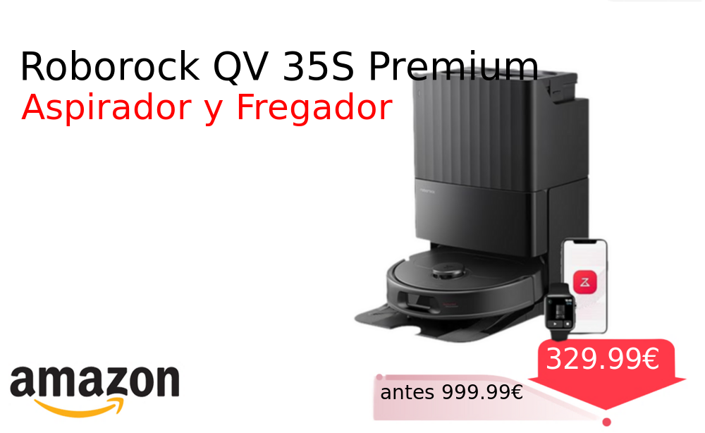 Buen Precio✨ Roborock QV 35S Premium❗️🆕 #Amazon 🇪🇸 📛Precio Ya 279.99€❗️ (PVP: +349.99€) ✨Robot aspirador con base multifuncional Succión HyperForce de 10000 Pa y cepillos antienredos Limpia y seca automáticamente con mopas giratorias de elevación inteligente. cholloya.com/ROBOROCK_QV35S