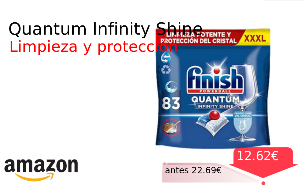 40% 📉 Vaya descuentazo‼‼ Quantum Infinity Shine❗️🆕 #Amazon 🇪🇸 📛Precio Ya 12.62€❗️ (PVP: +22.69€) ✨Pastillas para lavavajillas con fórmula potente que elimina la suciedad más resistente Proporcionan un brillo excepcional y protegen la cristalería en cada lavado. cholloya.com/FINISH_QUANTUM_