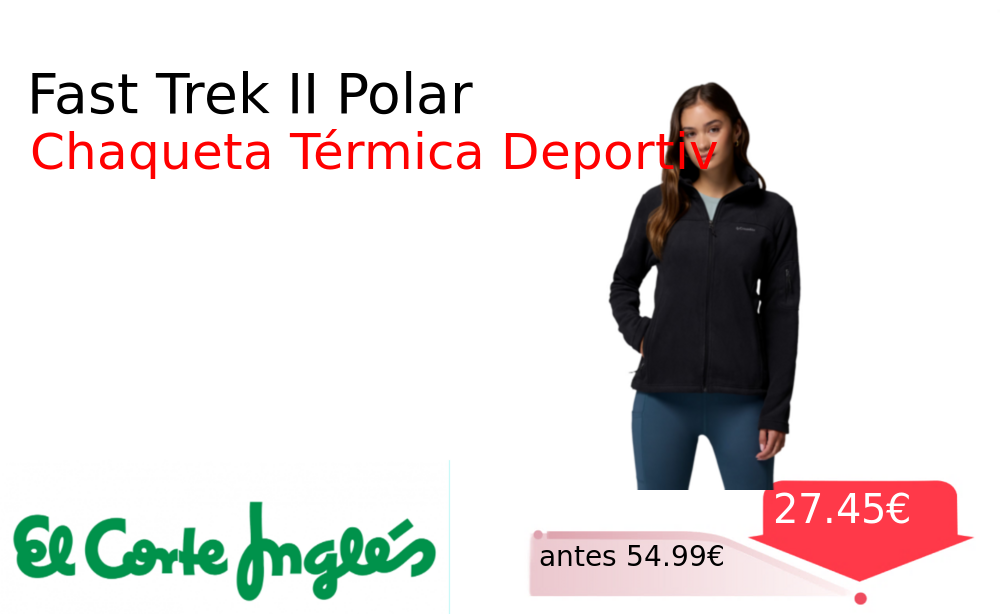 Mitad de precio✂️ Fast Trek II Polar❗️🆕 #Elcorteingles 📛Precio Ya 27.45€❗️ (PVP: +54.99€) ✨Chaqueta técnica para mujer ideal para running y senderismo matutino Forro micropolar que proporciona calor y confort en cualquier condición meteorológica. cholloya.com/FORRO_FAST_TREK