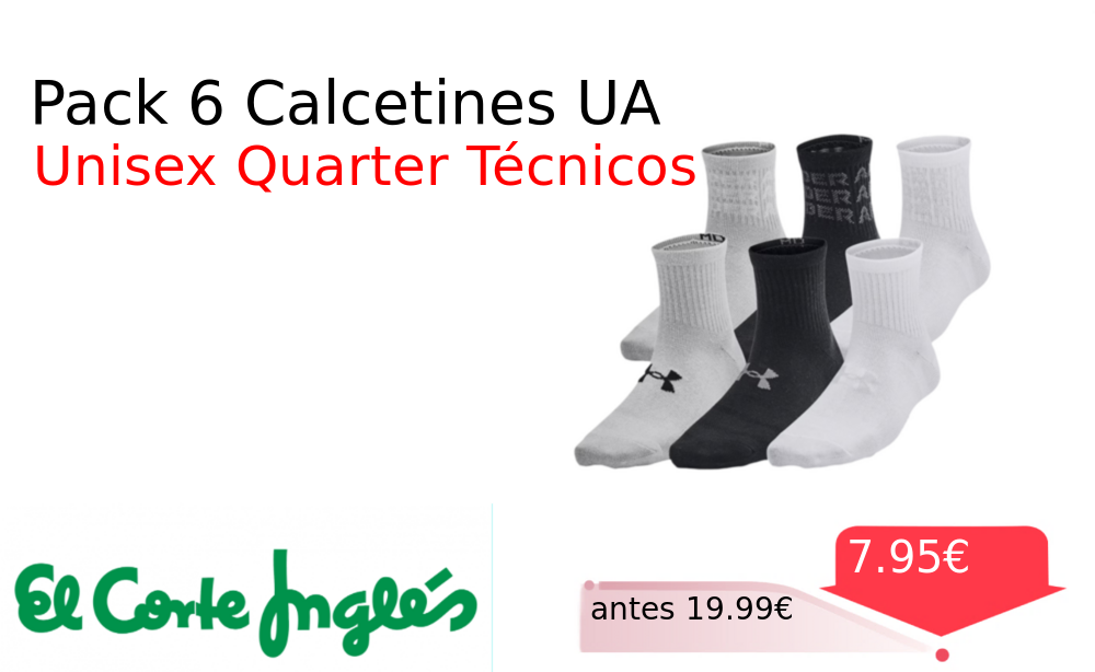 Mitad de precio✂️ Pack 6 Calcetines UA❗️🆕 #Elcorteingles 📛Precio Ya 7.95€❗️ (PVP: +19.99€) ✨Pack de seis calcetines técnicos unisex para deporte Diseño quarter transpirables y cómodos Material duradero que se adapta al pie para un rendimiento óptimo. cholloya.com/UA_ESSENTIAL_6P