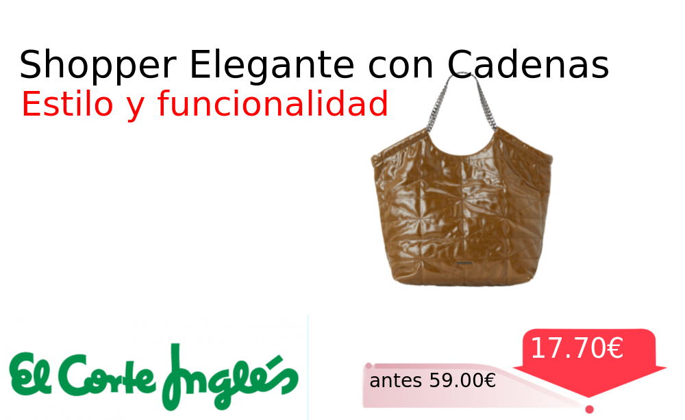 Mitad de precio✂️ Shopper Elegante con Cadenas❗️🆕 #Elcorteingles 📛Precio Ya 17.70€❗️ (PVP: +59.00€) ✨Bolso shopper elegante con detalle de cadenas doradas Diseño espacioso y versátil ideal para el día a día Fabricado con materiales de calidad. cholloya.com/BOLSO_SHOPPER_C