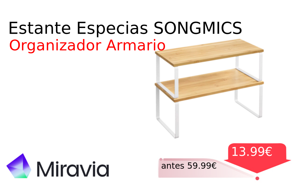 ¡¡Ojo a la ganga!! 📛 Estante Especias SONGMICS❗️🆕 #Miravia 📛Precio Ya 13.99€❗️ (PVP: +59.99€) ✨Organizador de especias extensible en metal y madera Dos estantes versátiles para armarios y cocina Colores neutros que combinan con cualquier decoración. cholloya.com/SONGMICS_ESPECI