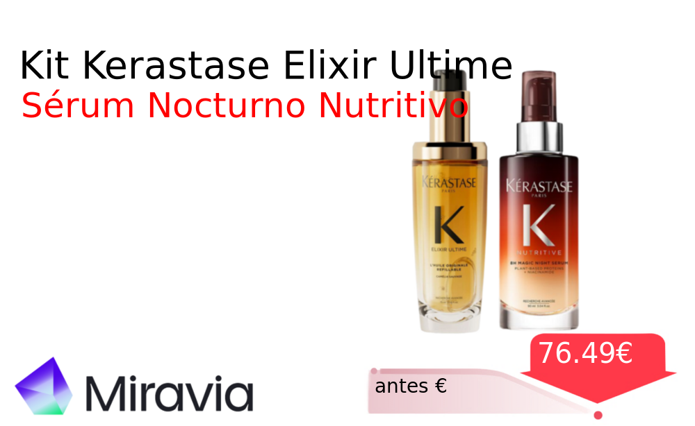 Buen Precio✨ Kit Kerastase Elixir Ultime❗️🆕 #Miravia 📛Precio Ya 76.49€❗️ (PVP: +€) ✨Combina el aceite nutritivo con el sérum reparador nocturno para cabello seco Obtén nutrición profunda brillo intenso y recuperación mientras descansas. cholloya.com/KIT_KERASTASE_E