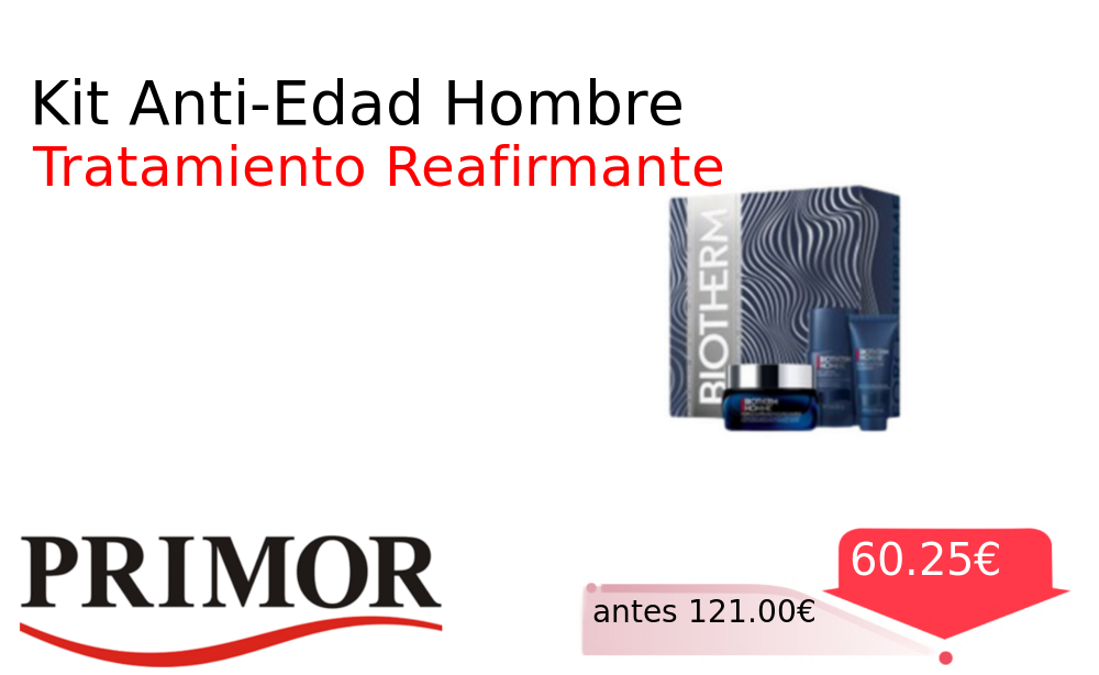 Mitad de precio✂️ Kit Anti-Edad Hombre❗️🆕 #Primor 📛Precio Ya 60.25€❗️ (PVP: +121.00€) ✨Estuche de tratamiento anti-edad para hombre con textura ligera Formulado para reafirmar y revitalizar la piel proporcionando un aspecto más joven y saludable. cholloya.com/BIOTHERM_HOMBRE