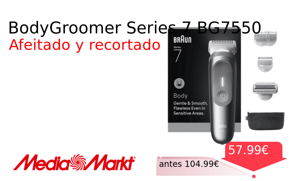 40% 📉 Vaya descuentazo‼‼ BodyGroomer Series 7 BG7550❗️🆕 #MediaMarkt 📛Precio Ya 57.99€❗️ (PVP: +104.99€) ✨Afeitadora corporal todo en uno para un cuidado integral Tecnología Smartlight para mayor precisión y comodidad en zonas íntimas Funciona en seco y bajo. cholloya.com/BRAUN_BODYGROOM