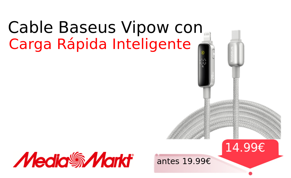 Buen Precio✨ Cable Baseus Vipow con❗️🆕 #MediaMarkt 📛Precio Ya 14.99€❗️ (PVP: +19.99€) ✨Cable USB-C a Lightning con pantalla inteligente integrada Ofrece carga rápida de 20W transmisión de datos y una construcción reforzada para máxima durabilidad. cholloya.com/BASEUS_VIPOW_PA