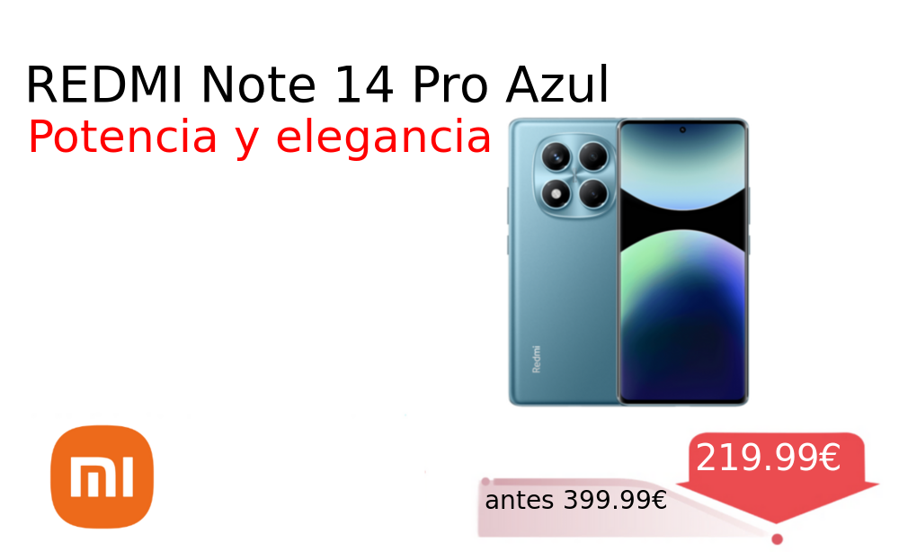 40% 📉 Vaya descuentazo‼‼ REDMI Note 14 Pro Azul❗️🆕 #Mi 📛Precio Ya 219.99€❗️ (PVP: +399.99€) ✨El Xiaomi REDMI Note 14 Pro combina potencia y estilo Con 12 GB de RAM y 512 GB de almacenamiento en un diseño Azul. cholloya.com/REDMI_NOTE_14_P