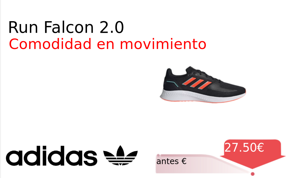 Buen Precio✨ Run Falcon 2.0❗️🆕 #Adidas 📛Precio Ya 27.50€❗️ (PVP: +€) ✨Zapatilla de running con parte superior de malla para una ventilación óptima Diseñada para el confort duradero en tus carreras y el estilo urbano. cholloya.com/ADIDAS_FALCON2