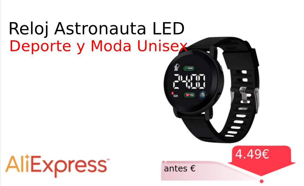 Buen Precio✨ Reloj Astronauta LED❗️🆕 #AliExpress 📛Precio Ya 4.49€❗️ (PVP: +€) ✨Reloj deportivo unisex de silicona con diseño inspirado en astronauta Ligero resistente al agua y con pantalla LED digital Ideal para el día. cholloya.com/RELOJ_ASTRONAUT