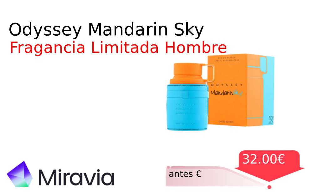 Buen Precio✨ Odyssey Mandarin Sky❗️🆕 #Miravia 📛Precio Ya 32.00€❗️ (PVP: +€) ✨Fragancia masculina limitada con vibrantes notas cítricas de mandarina Elegancia moderna que perdura durante horas ideal para ocasiones especiales y uso diario. cholloya.com/ARMAF_ODYSSEY_M