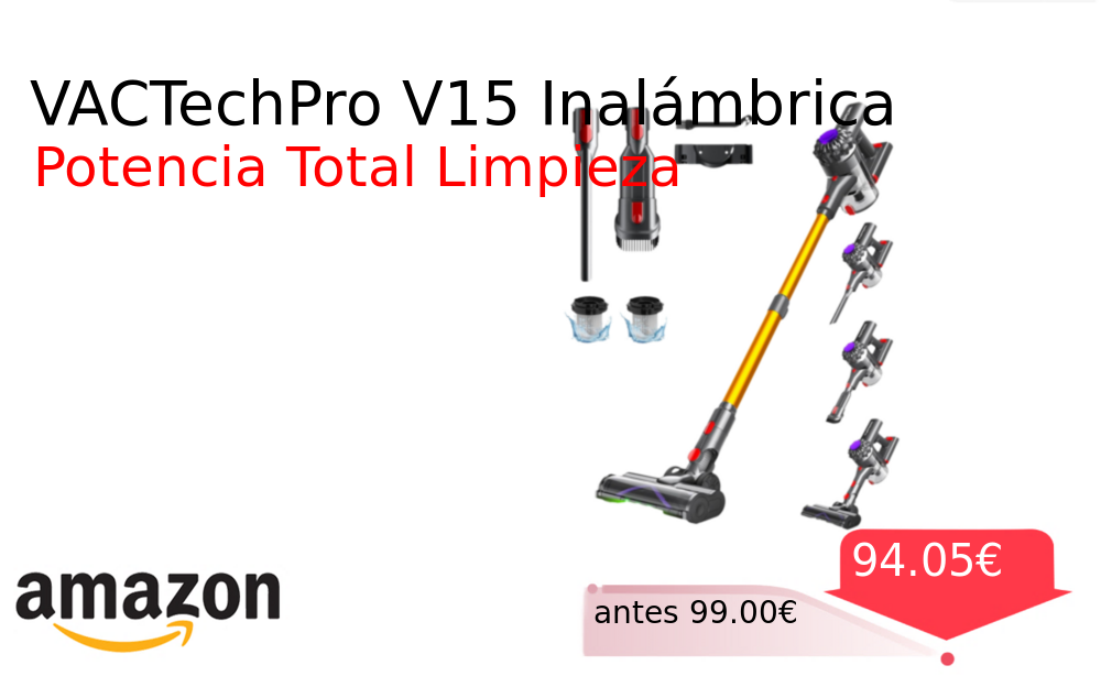 Buen Precio✨ VACTechPro V15 Inalámbrica❗️🆕 #Amazon 🇪🇸 📛Precio Ya 94.05€❗️ (PVP: +99.00€) ✨Aspiradora sin cable 6 en 1 con potente succión de 35kPa Autonomía extendida de 35 minutos y batería extraíble Ideal para eliminar pelo. cholloya.com/VAC_TECHPRO_V15
