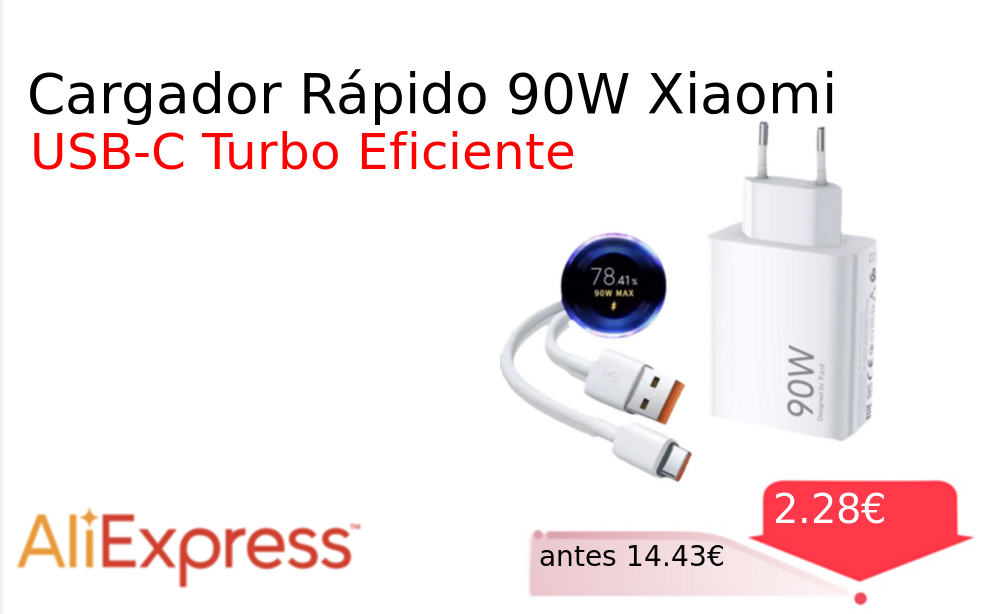 Mitad de precio✂️ Cargador Rápido 90W Xiaomi❗️🆕 #AliExpress 📛Precio Ya 2.28€❗️ (PVP: +14.43€) ✨Cargador USB-C de 90W con tecnología de carga rápida para dispositivos Xiaomi y Redmi Compatible con múltiples modelos garantiza eficiencia energética y protección contra. cholloya.com/CARGADOR_90W_XI