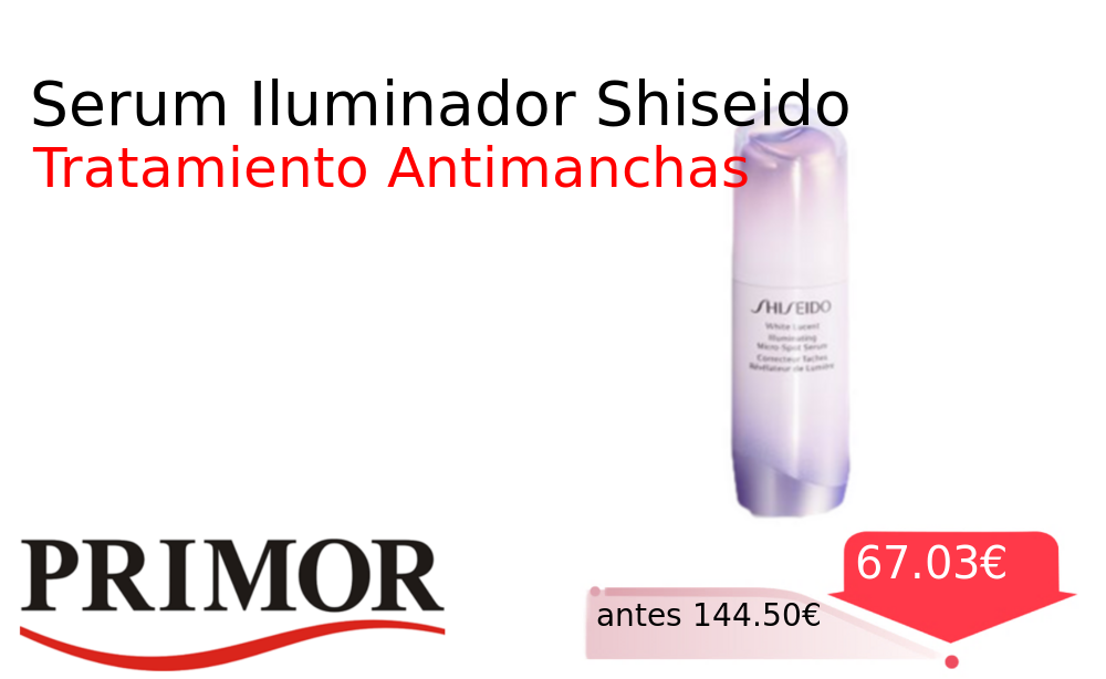 Mitad de precio✂️ Serum Iluminador Shiseido❗️🆕 #Primor 📛Precio Ya 67.03€❗️ (PVP: +144.50€) ✨Suero iluminador de Shiseido que combate manchas cutáneas Formulación avanzada para un rostro radiante y uniforme con uso continuado con diseno innovador y funcional. cholloya.com/SHISEIDO_SERUM