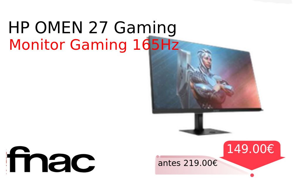 Más de un 30% 🚀 HP OMEN 27 Gaming❗️🆕 #fnac 📛Precio Ya 149.00€❗️ (PVP: +219.00€) ✨Pantalla gaming HP OMEN con 27 pulgadas Full HD y tasa de refresco de 165Hz Tecnología avanzada para una experiencia visual fluida y nítida. cholloya.com/HP_OMEN_27_GAMI