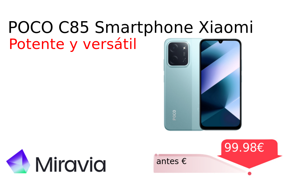 Buen Precio✨ POCO C85 Smartphone Xiaomi❗️🆕 #Miravia 📛Precio Ya 99.98€❗️ (PVP: +€) ✨Smartphone con cámara dual de 50MP con IA pantalla inmersiva de 6 9 pulgadas y procesador octa-core Batería de 6000mAh con carga rápida. cholloya.com/XIAOMI_POCO_C85
