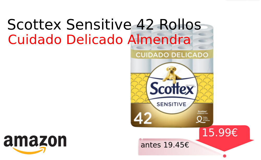 Buen Precio✨ Scottex Sensitive 42 Rollos❗️🆕 #Amazon 🇪🇸 📛Precio Ya 15.99€❗️ (PVP: +19.45€) ✨Papel higiénico de tres capas con toque de leche de almendras para un cuidado delicado Set de cuarenta y dos rollos distribuidos en siete. cholloya.com/SCOTTE_SENSITIV
