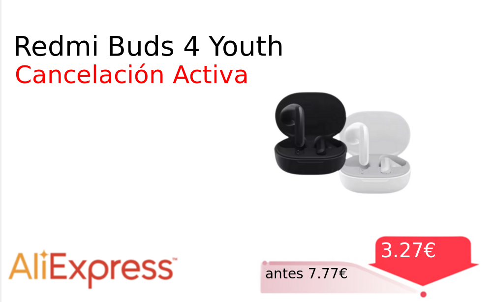 Mitad de precio✂️ Redmi Buds 4 Youth❗️🆕 #AliExpress 📛Precio Ya 3.27€❗️ (PVP: +7.77€) ✨Auriculares inalámbricos con cancelación activa de ruido Diseño ergonómico y sonido cristalino para disfrutar tu música favorita sin interrupciones con cancelacion de ruido activa. cholloya.com/XIAOMI_BUDS_4_Y