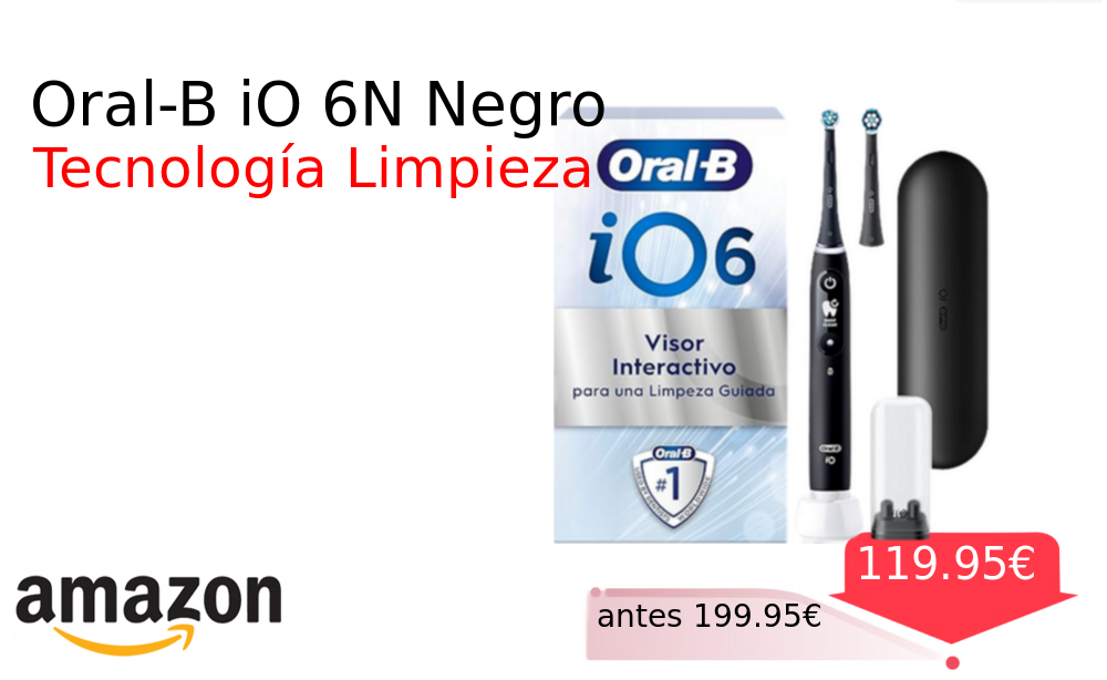 40% 📉 Vaya descuentazo‼‼ Oral-B iO 6N Negro❗️🆕 #Amazon 🇪🇸 📛Precio Ya 119.95€❗️ (PVP: +199.95€) ✨Cepillo eléctrico negro con tecnología iO incluye dos cabezales y estuche de viaje Cinco modos de cepillado con sensor de presión para una limpieza. cholloya.com/ORALB_IO6N_NEGR