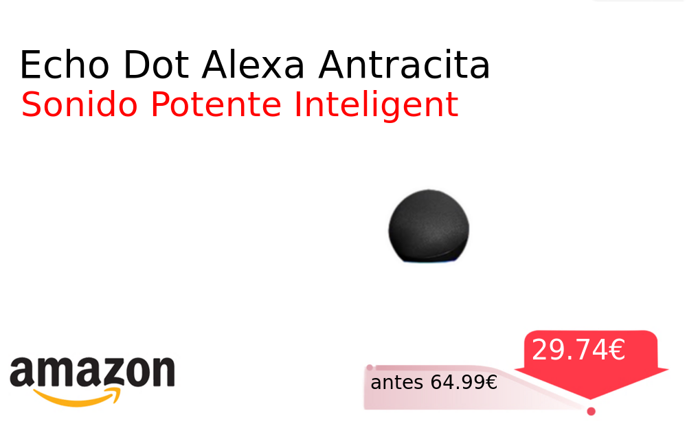 Mitad de precio✂️ Echo Dot Alexa Antracita❗️🆕 #Amazon 🇪🇸 📛Precio Ya 29.74€❗️ (PVP: +64.99€) ✨Altavoz inteligente con Alexa sonido potente y de gran amplitud Controla tu hogar música y más mediante comandos de voz Diseño compacto en color. cholloya.com/ECHO_DOT_ALEXA