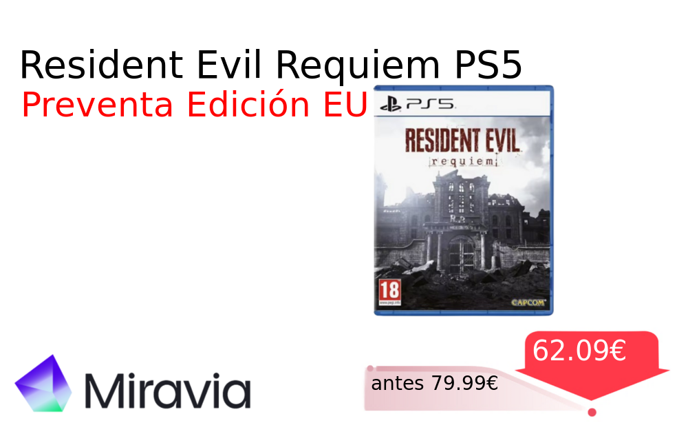 Buen Precio✨ Resident Evil Requiem PS5❗️🆕 #Miravia 📛Precio Ya 62.09€❗️ (PVP: +79.99€) ✨Embárcate en una nueva aventura de terror con este juego para PS5 Edición PAL europea original y precintada Disponible en preventa. cholloya.com/RESIDENT_EVIL_R