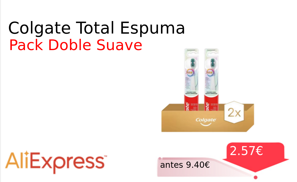 Mitad de precio✂️ Colgate Total Espuma❗️🆕 #AliExpress 📛Precio Ya 2.57€❗️ (PVP: +9.40€) ✨Cepillo dental Colgate Total con tecnología espuma limpiadora Filamentos suaves para cuidado gingival Limpieza profunda y protección completa Pack doble para uso prolongado. cholloya.com/COLGATE_ESPUMA_
