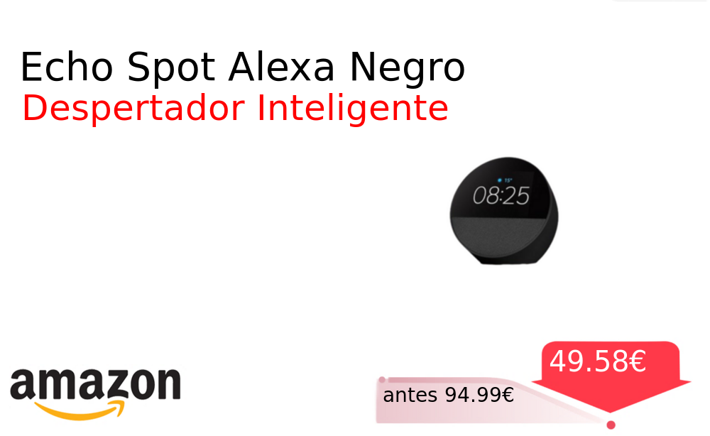 40% 📉 Vaya descuentazo‼‼ Echo Spot Alexa Negro❗️🆕 #Amazon 🇪🇸 📛Precio Ya 49.58€❗️ (PVP: +94.99€) ✨Despertador inteligente con pantalla y Alexa integrada Sonido nítido y diseño compacto para tu mesilla Controla tu hogar con voz. cholloya.com/ECHO_SPOT_NEGRO