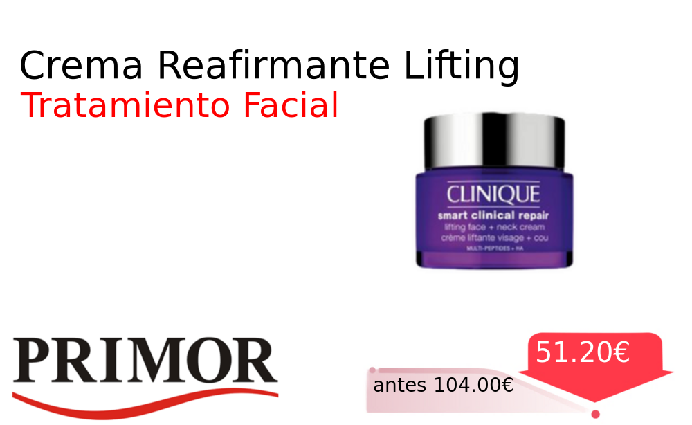 Mitad de precio✂️ Crema Reafirmante Lifting❗️🆕 #Primor 📛Precio Ya 51.20€❗️ (PVP: +104.00€) ✨Crema reafirmante con efecto lifting para rostro y cuello Formulación inteligente que repara visiblemente devolviendo firmeza y juventud a tu piel diariamente. cholloya.com/CLINIQUE_SMART_