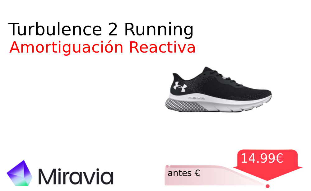 Buen Precio✨ Turbulence 2 Running❗️🆕 #Miravia 📛Precio Ya 14.99€❗️ (PVP: +€) ✨Zapatillas running con tecnología HOVR para máxima amortiguación reactiva Malla transpirable y suela duradera Ideal para entrenamientos diarios con gran comodidad. cholloya.com/UNDER_ARMOUR_HO