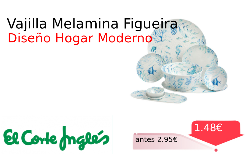 40% 📉 Vaya descuentazo‼‼ Vajilla Melamina Figueira❗️🆕 #Elcorteingles 📛Precio Ya 1.48€❗️ (PVP: +2.95€) ✨Vajilla de melamina con diseño Figueira ideal para uso diario Piezas resistentes y ligeras perfectas para tu hogar Calidad El Corte Inglés. cholloya.com/VAJILLA_FIGUEIR