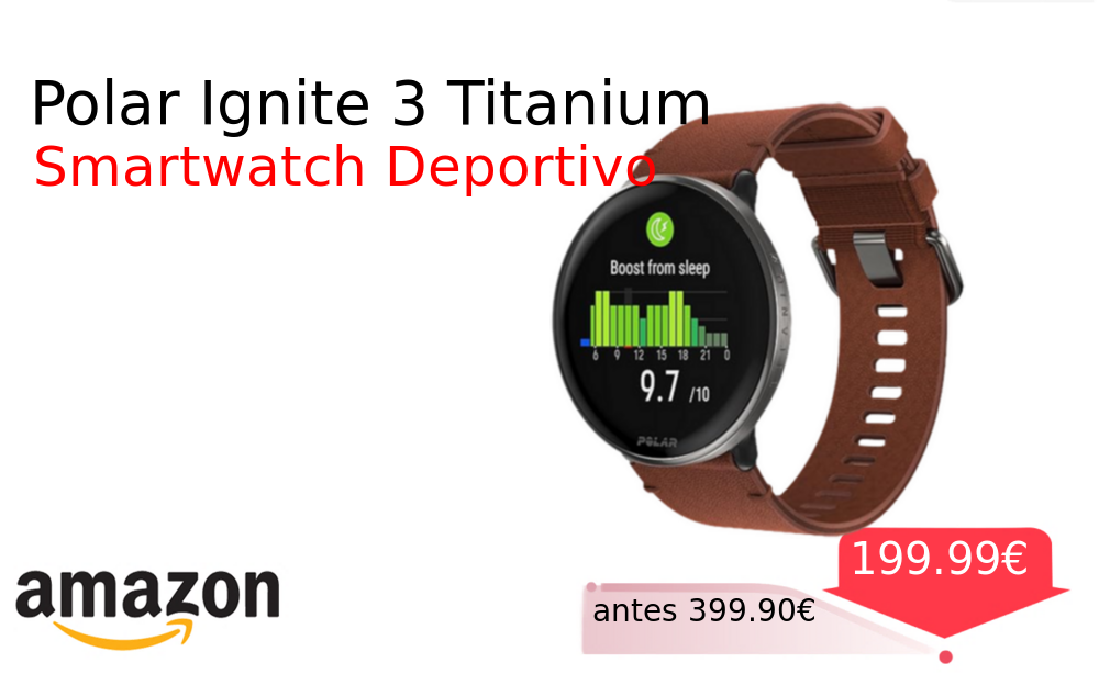 40% 📉 Vaya descuentazo‼‼ Polar Ignite 3 Titanium❗️🆕 #Amazon 🇪🇸 📛Precio Ya 199.99€❗️ (PVP: +399.90€) ✨Reloj inteligente deportivo con GPS integrado y monitorización cardiaca continua Pantalla AMOLED de 1 28 pulgadas análisis del sueño y más de 150 modos. cholloya.com/POLAR_IGNITE_3