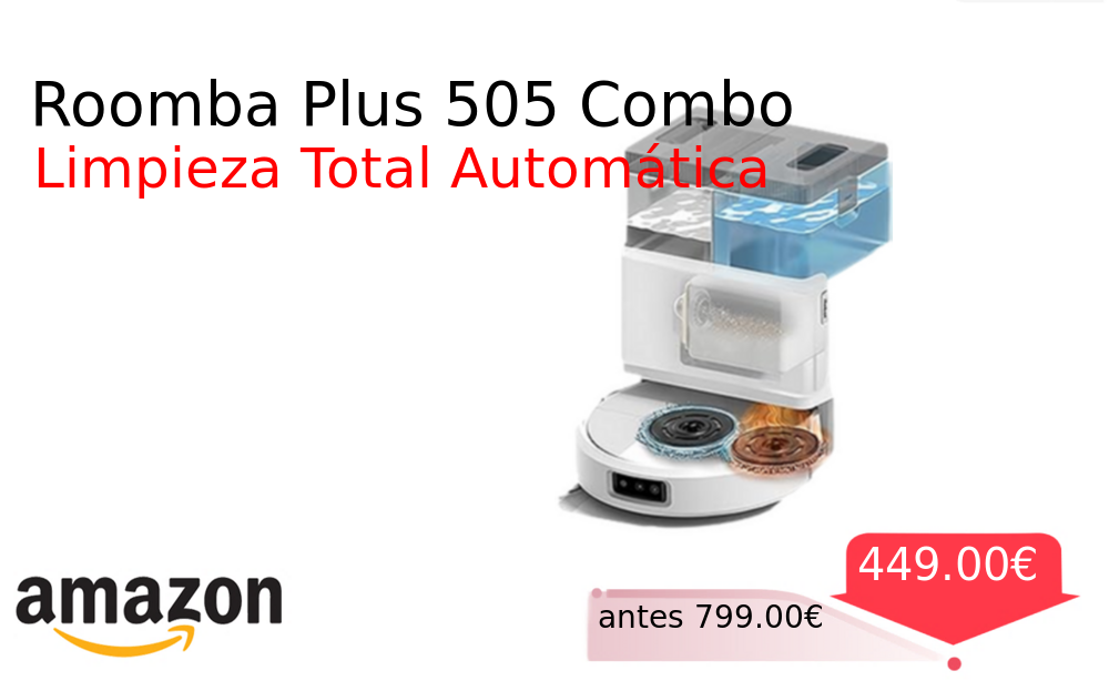 40% 📉 Vaya descuentazo‼‼ Roomba Plus 505 Combo❗️🆕 #Amazon 🇪🇸 📛Precio Ya 449.00€❗️ (PVP: +799.00€) ✨Robot aspirador y fregador inteligente con base autolimpiable Tecnología LiDAR para navegación precisa y sistema de secado por aire caliente Limpieza completa automática. cholloya.com/ROOMBA_505_COMB