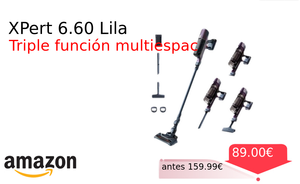 40% 📉 Vaya descuentazo‼‼ XPert 6.60 Lila❗️🆕 #Amazon 🇪🇸 📛Precio Ya 89.00€❗️ (PVP: +159.99€) ✨Aspiradora escoba sin cable con triple función multiespacios Tecnología de litio dos velocidades y gatillo Boost Ligera y portátil para limpieza eficiente en cualquier. cholloya.com/ROWENTA_XPERT_6