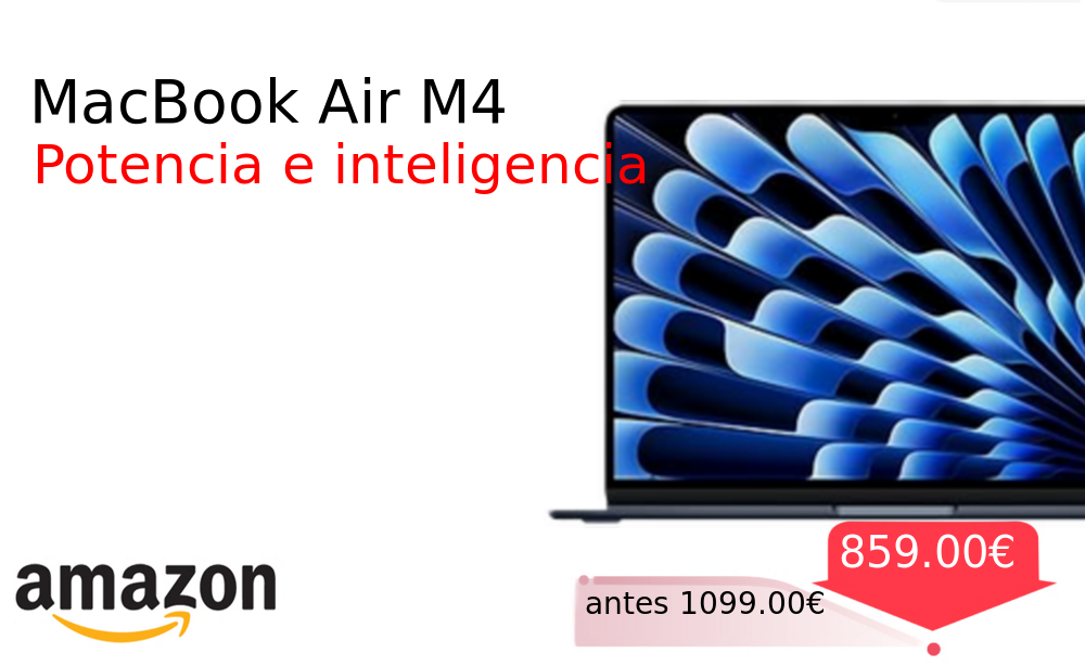 Buen Precio✨ MacBook Air M4❗️🆕 #Amazon 🇪🇸 📛Precio Ya 859.00€❗️ (PVP: +1099.00€) ✨Portátil ultradelgado con chip M4 y pantalla Liquid Retina de 13 6 pulgadas Memoria unificada de 16 GB y almacenamiento SSD Diseñado para Apple. cholloya.com/MACBOOK_AIR_M4
