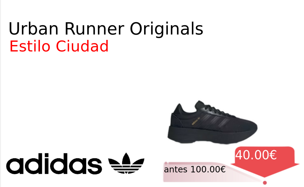 Mitad de precio✂️ Urban Runner Originals❗️🆕 #Adidas 📛Precio Ya 40.00€❗️ (PVP: +100.00€) ✨Zapatillas Adidas Originals con diseño urbano y estilo único Comodidad excepcional para el día a día en la ciudad Calzado deportivo de calidad. cholloya.com/ADIDAS_CITY_RNR
