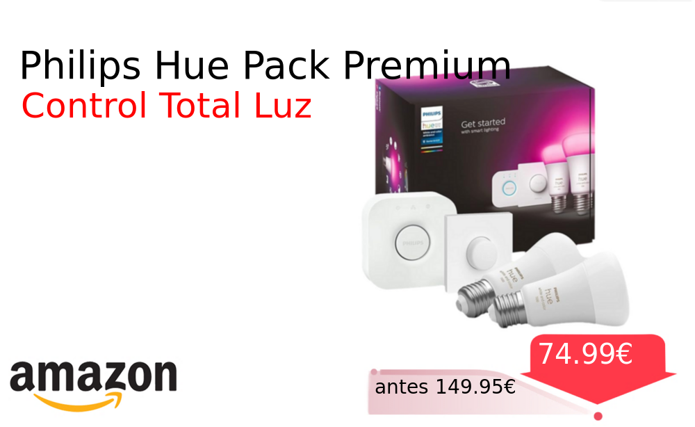 40% 📉 Vaya descuentazo‼‼ Philips Hue Pack Premium❗️🆕 #Amazon 🇪🇸 📛Precio Ya 74.99€❗️ (PVP: +149.95€) ✨Bombillas LED inteligentes con control remoto y colores vibrantes Funcionan con asistentes de voz para crear ambientes personalizados en tu hogar fácilmente. cholloya.com/HUE_PACK_PREMIU
