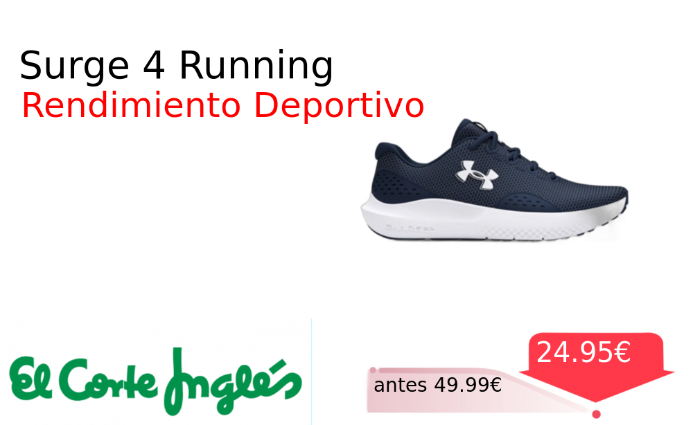 Mitad de precio✂️ Surge 4 Running❗️🆕 #Elcorteingles 📛Precio Ya 24.95€❗️ (PVP: +49.99€) ✨Zapatillas running hombre con tecnología Charged Surge 4 Under Armour Diseño ligero y flexible para máximo rendimiento deportivo en tus entrenamientos diarios. cholloya.com/UA_CHARGED_SURG