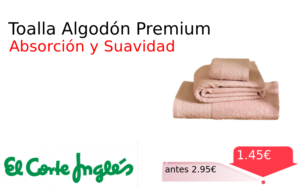 Mitad de precio✂️ Toalla Algodón Premium❗️🆕 #Elcorteingles 📛Precio Ya 1.45€❗️ (PVP: +2.95€) ✨Toalla de baño de algodón suave y absorbente con un gramaje generoso para un secado eficaz y cómodo tras la ducha o el baño. cholloya.com/TOALLA_MODULO_B