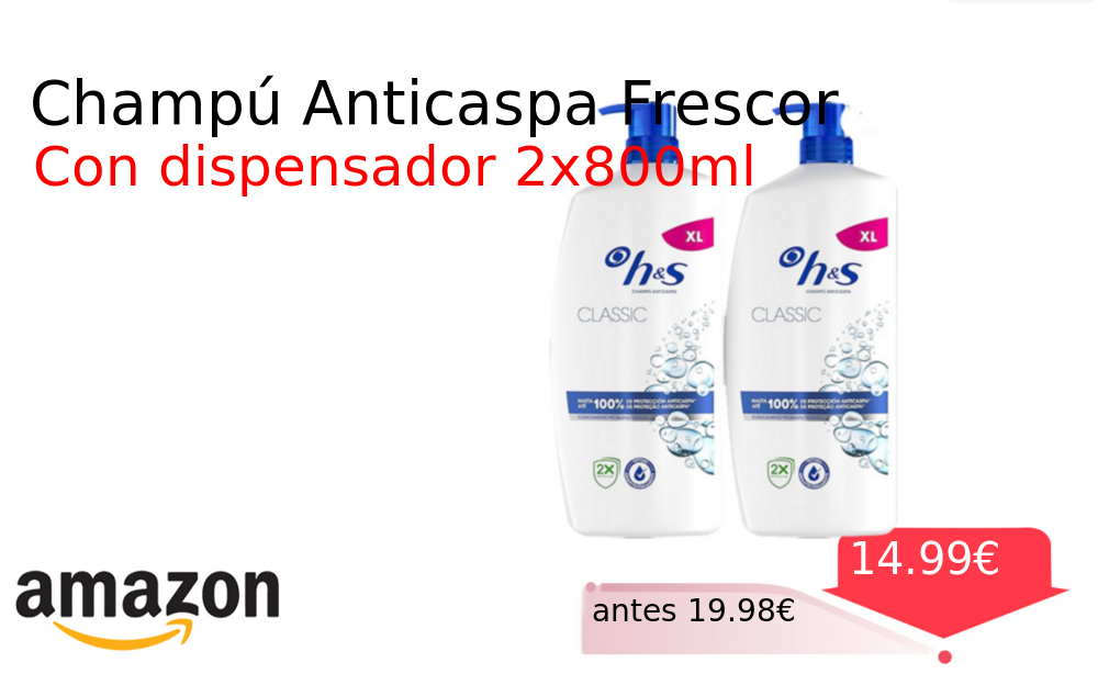 Buen Precio✨ Champú Anticaspa Frescor❗️🆕 #Amazon 🇪🇸 📛Precio Ya 14.99€❗️ (PVP: +19.98€) ✨Champú anticaspa de uso diario con protección clínicamente probada Proporciona una sensación de frescor intenso y es apto para todo tipo de cabello. cholloya.com/CHAMPU_ANTICASP