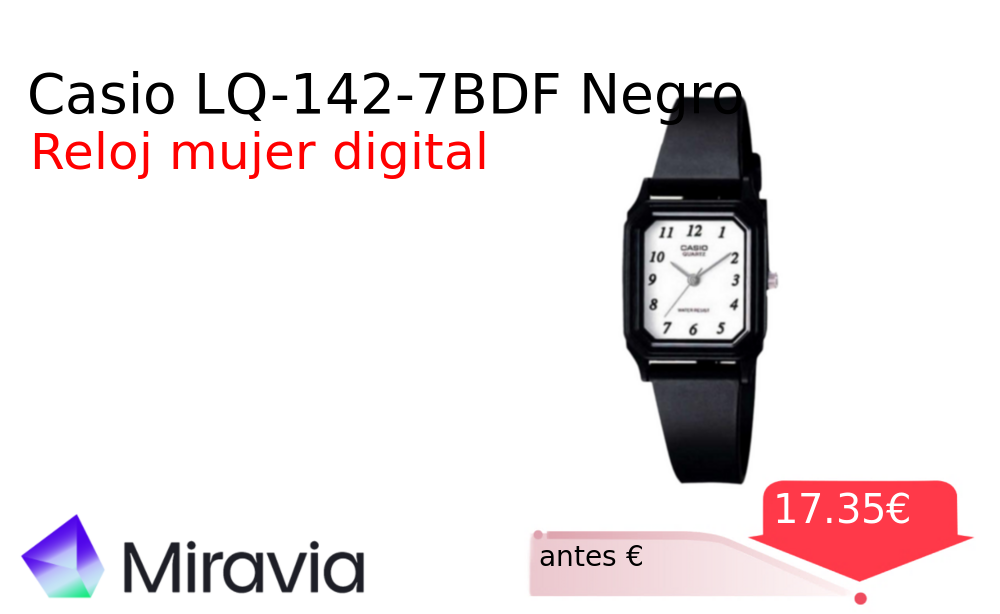 Buen Precio✨ Casio LQ-142-7BDF Negro❗️🆕 #Miravia 📛Precio Ya 17.35€❗️ (PVP: +€) ✨Smartwatch avanzado con monitorizacion de salud GPS integrado y notificaciones inteligentes para estilo de vida activo con tecnologia de imagen avanzada. cholloya.com/CASIO_LQ142_7BD